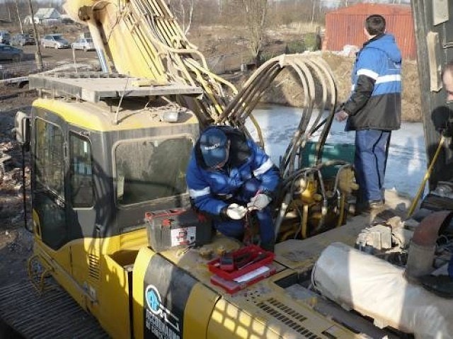 -проверяют во время наружного осмотра крепление узлов и деталей экскаватора, комплектность