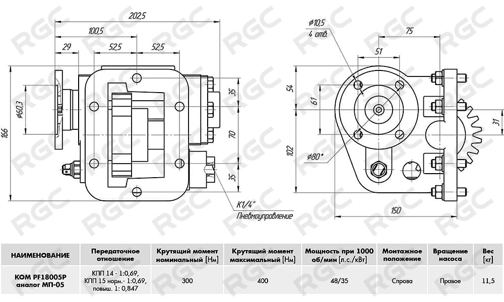 Коробка отбора мощности PF18005P (Аналог МП-05)