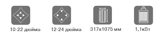 Автоматический шиномонтажный станок с пневматической наклонной задней стойкой для колес диаметром от 10 до 24 дюймов. Наружная блокировка без переходника от 10 до 22 дюймов. Внутренняя блокировка от 12 до 24 дюймов.