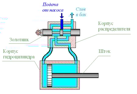 Принцип действия золотникового гидрораспределителя, управляющего движением штока гидроцилиндра: